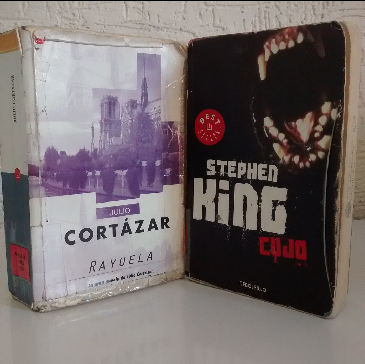 Finalmente, mis dos libros de retos. He querido leer Rayuela desde hace tiempo y aprovecharé la excusa del reto Abecedario. Y Cujo es parte de las lecturas de Rory Gilmore, un reto que he tenido muy olvidado. Con este admito mi total ignorancia, porque no tenía idea de que Cujo es un perro y que es el protagonista de la historia; muero por saber si está narrado desde su perspectiva o si es más del estilo de Christine.